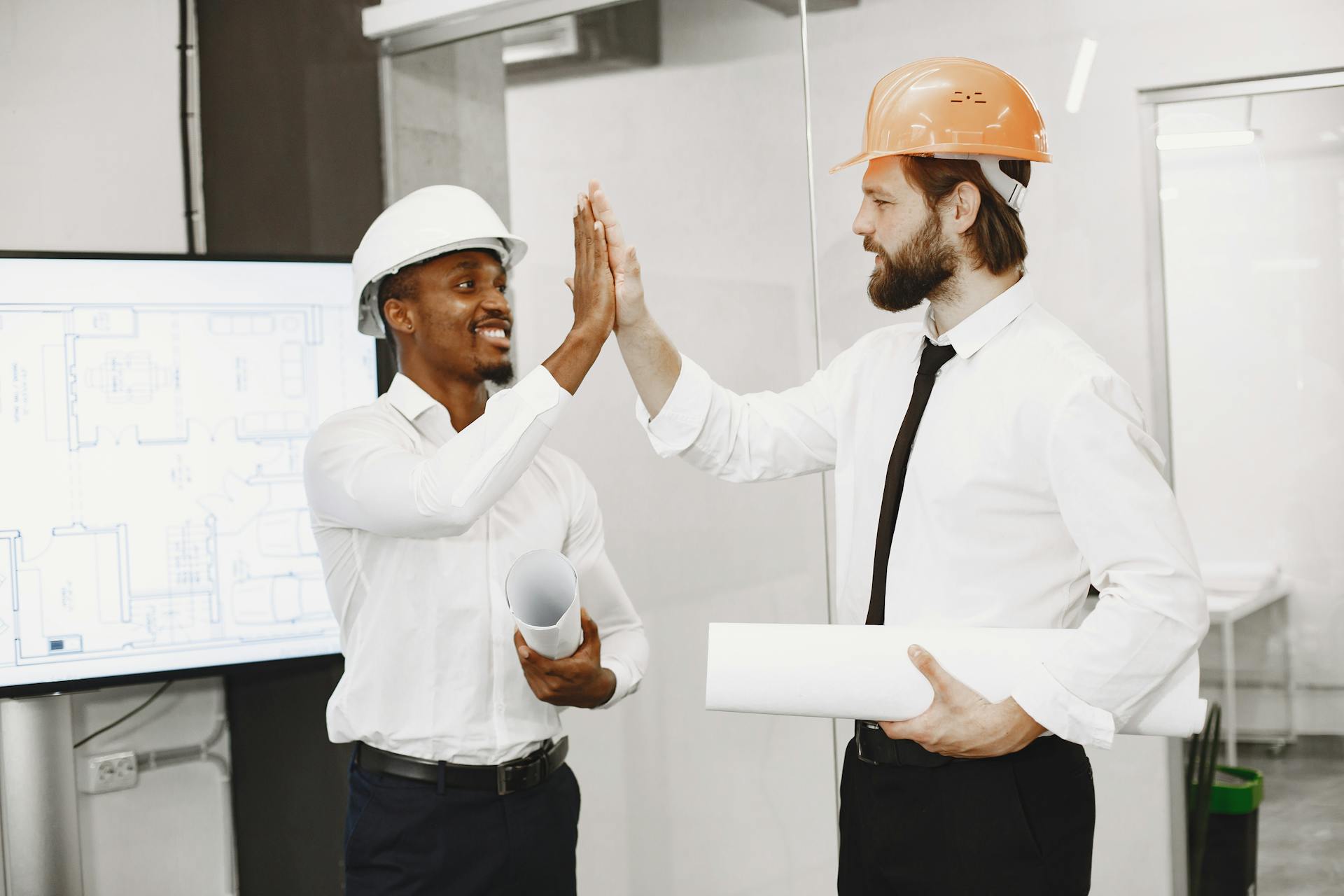 engenheiros comemorando em ambiente de projeto técnico